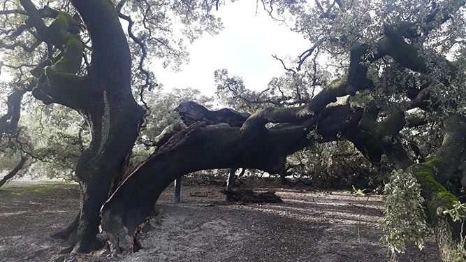 En la madrugada de este 28 de diciembre, probablemente un rayo ha terminado por separar en dos mitades un tronco extraordinario de 4,60 metros, perjudicado y erosionado, en los últimos tiempos, por el descomunal peso, las lluvias y los efectos atmosféricos. Este ejemplar único se emplaza en el interior del Parque Natural de las Sierras Subbéticas, en las proximidades del término municipal de Lucena, y proyectaba -desafortunadamente en pasado- una sombra interminable e inusual de hasta 600 metros cuadrados desde una copa de 29×21 metros de diámetro.