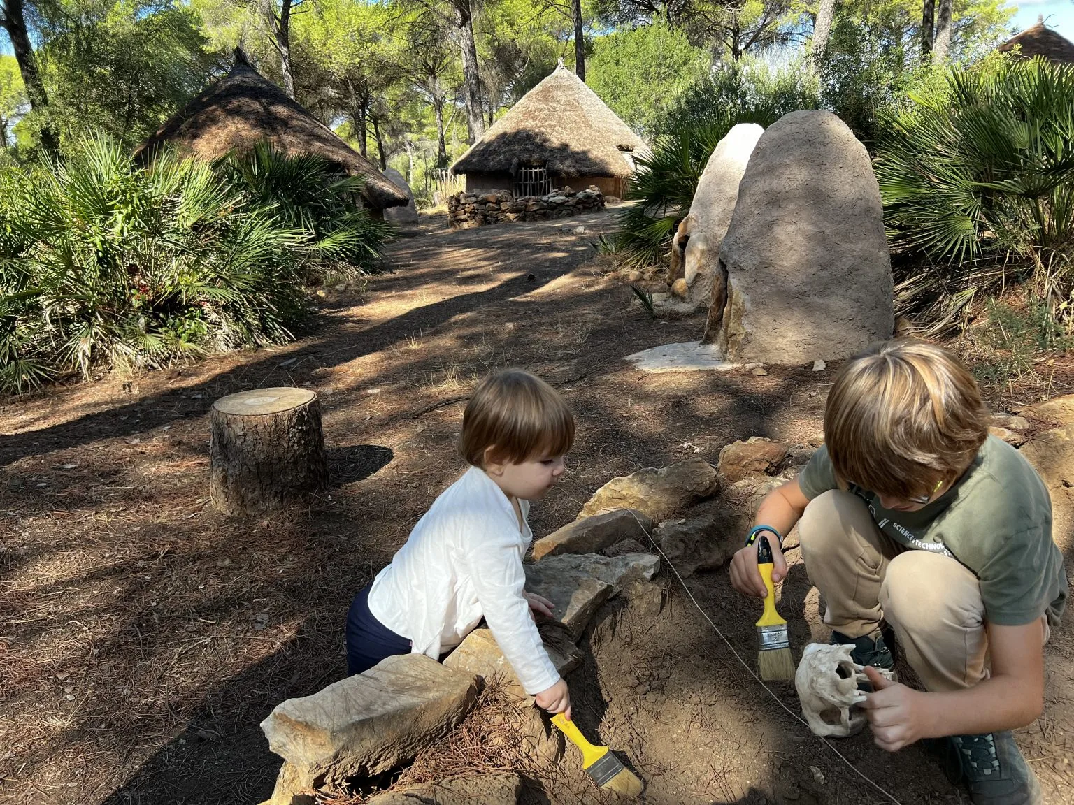 Nosotras fuimos a hacer un taller de arqueología con visita guiada incluida y la verdad que lo disfrutamos muchísimo. En primer lugar te van mostrando las diferentes cabañas, herramientas para cazar, mobiliario, etc… a la vez que te van contando muchas curiosidades de cómo vivían nuestros antepasados (hace ya más de 4500 años)
